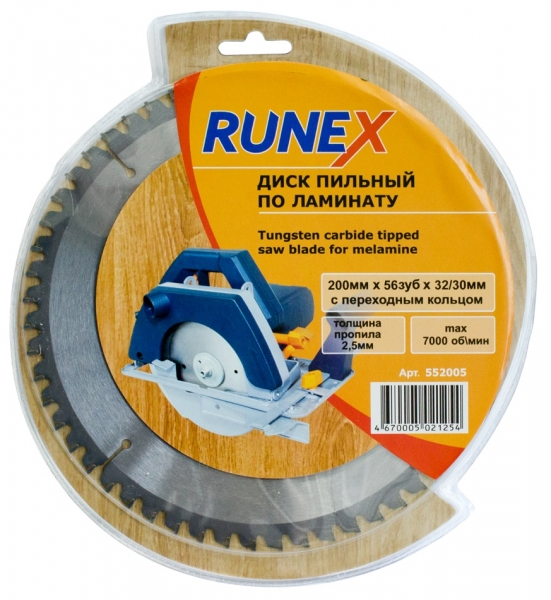 Диск пильный по ламинату 200мм х 56 зуб х 30мм, отрицательный угол наклона зубьев "Runex"