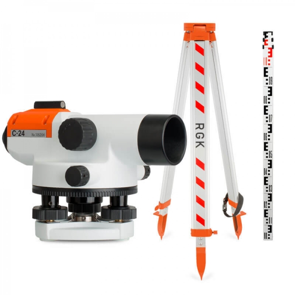 Комплект оптический нивелир RGK C-24 с поверкой + RGK S6-N + AMO S4