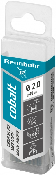 Сверло по металлу, ЦХ, 2,0х49мм, HSS-Co, Р6М5К5, (1уп-20шт) COBALT PROM