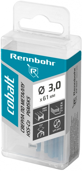 Сверло по металлу, ЦХ, 3,0х61мм, HSS-Co, Р6М5К5, (1уп-20шт) COBALT PROM